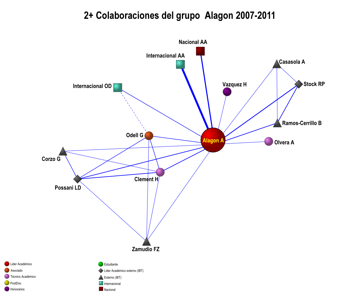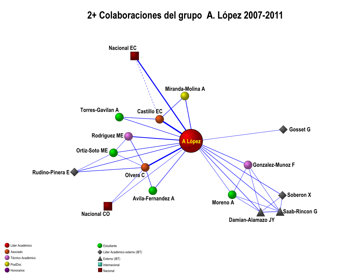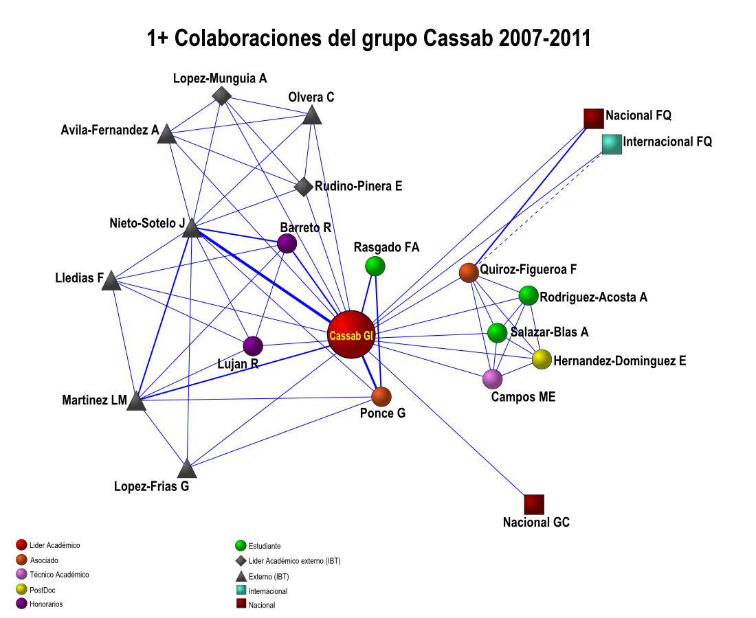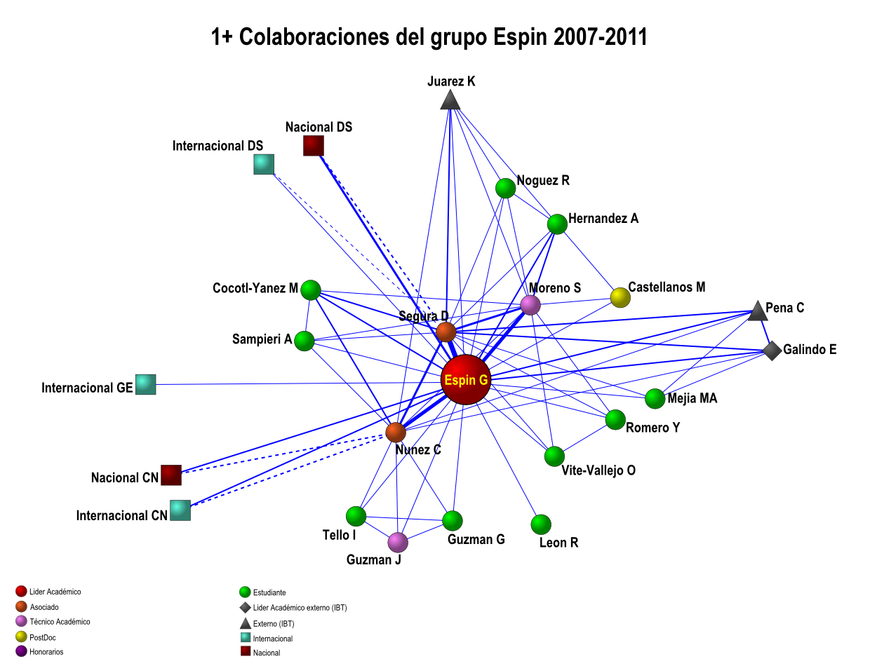 Colaboración interna de los grupos IBT-UNAM 2007-2011 (5 años)