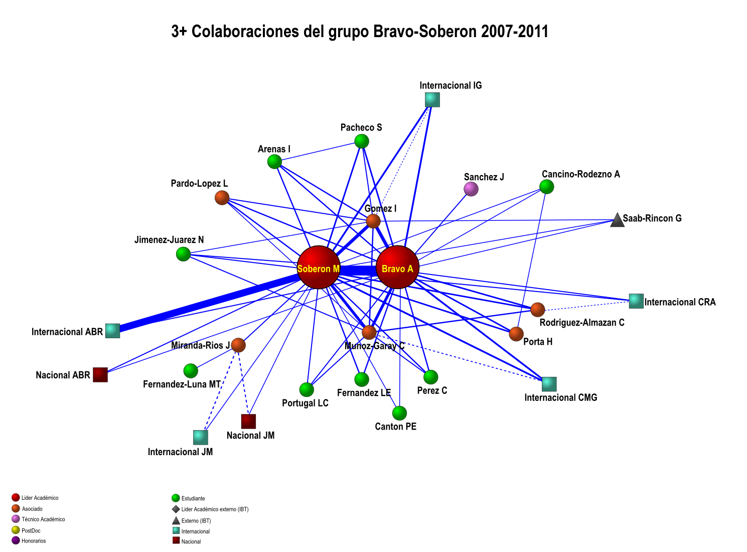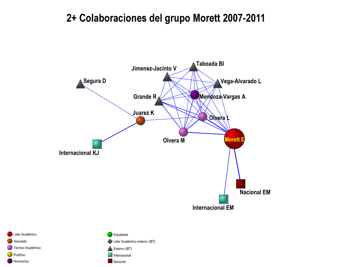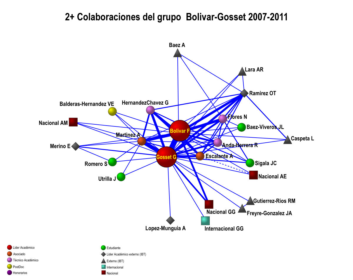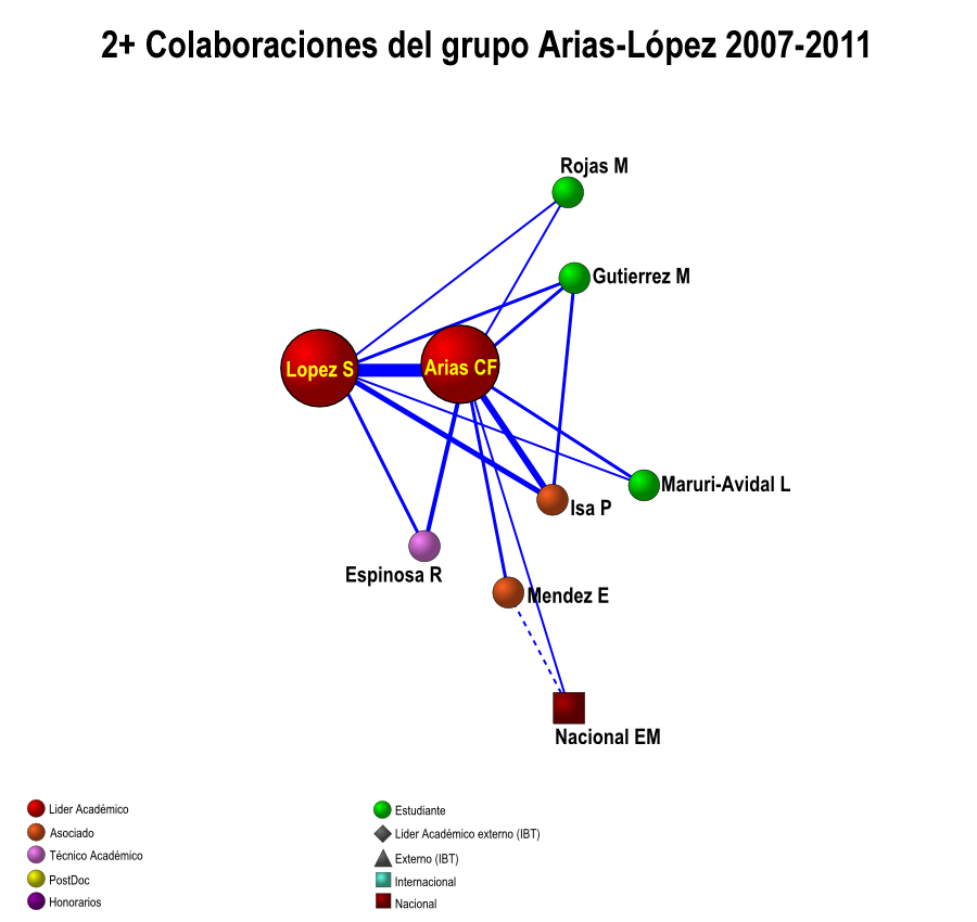 Colaboración interna de los grupos IBT-UNAM 2007-2011 (5 años)