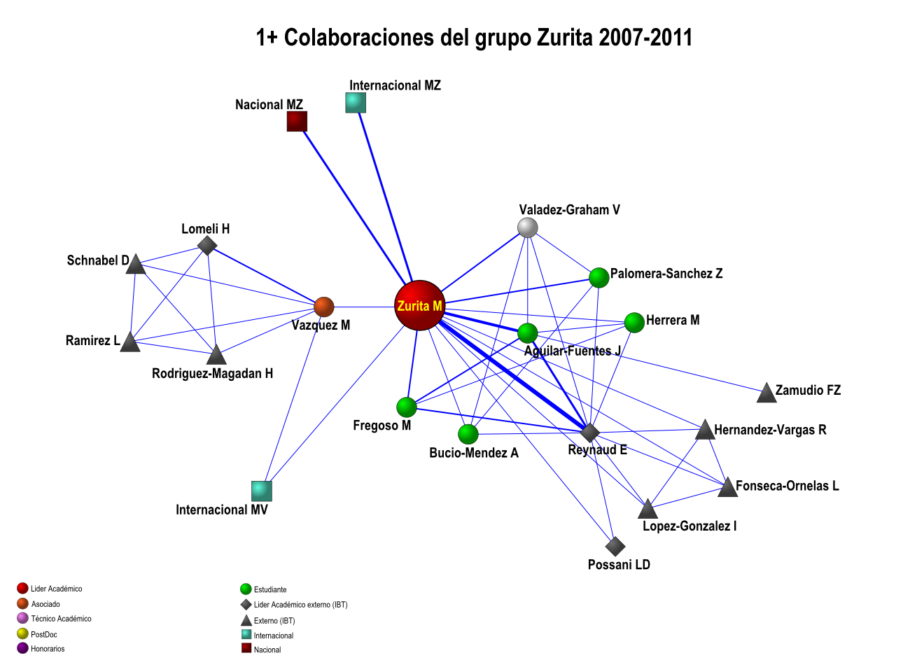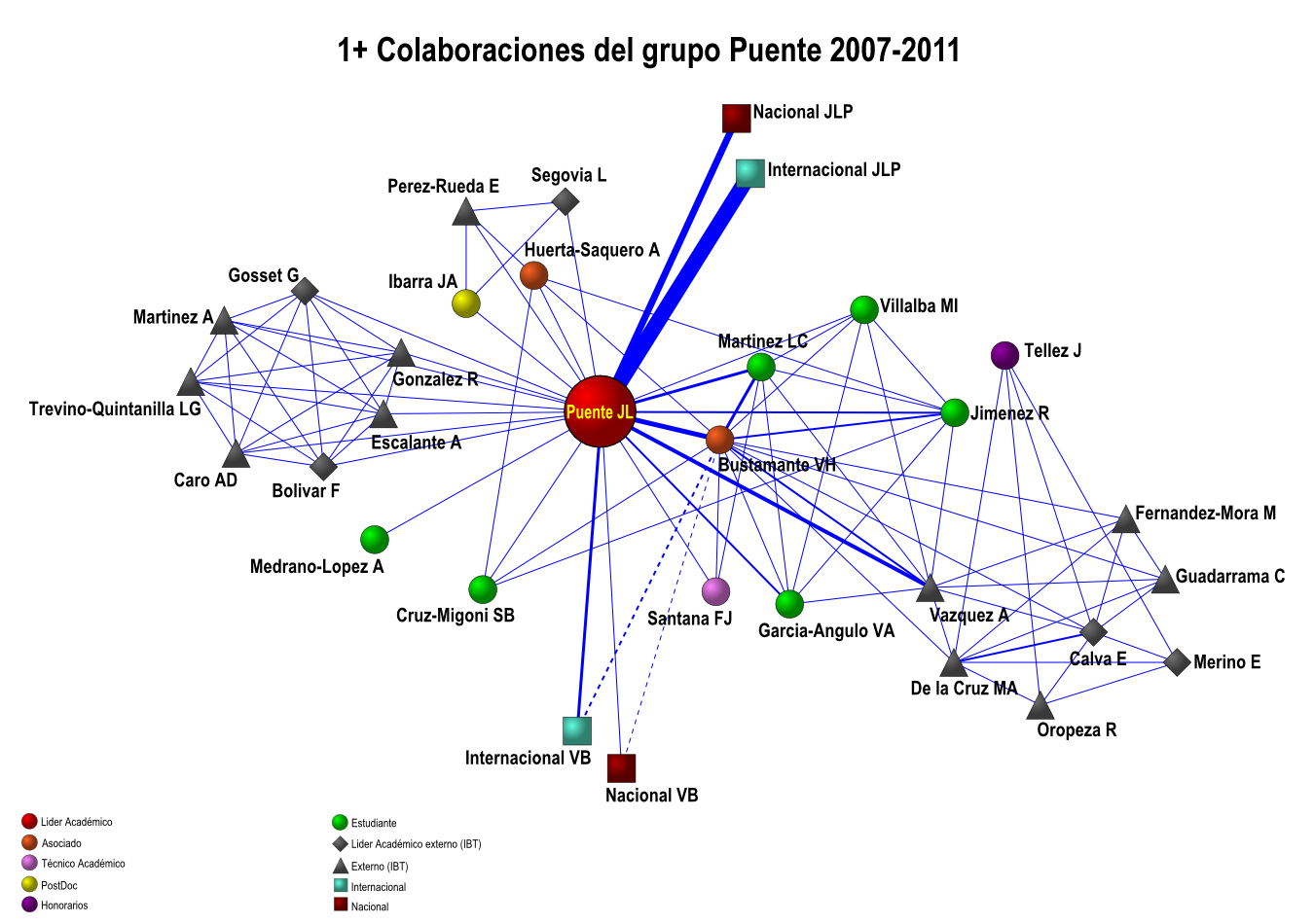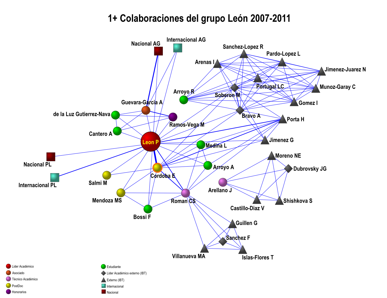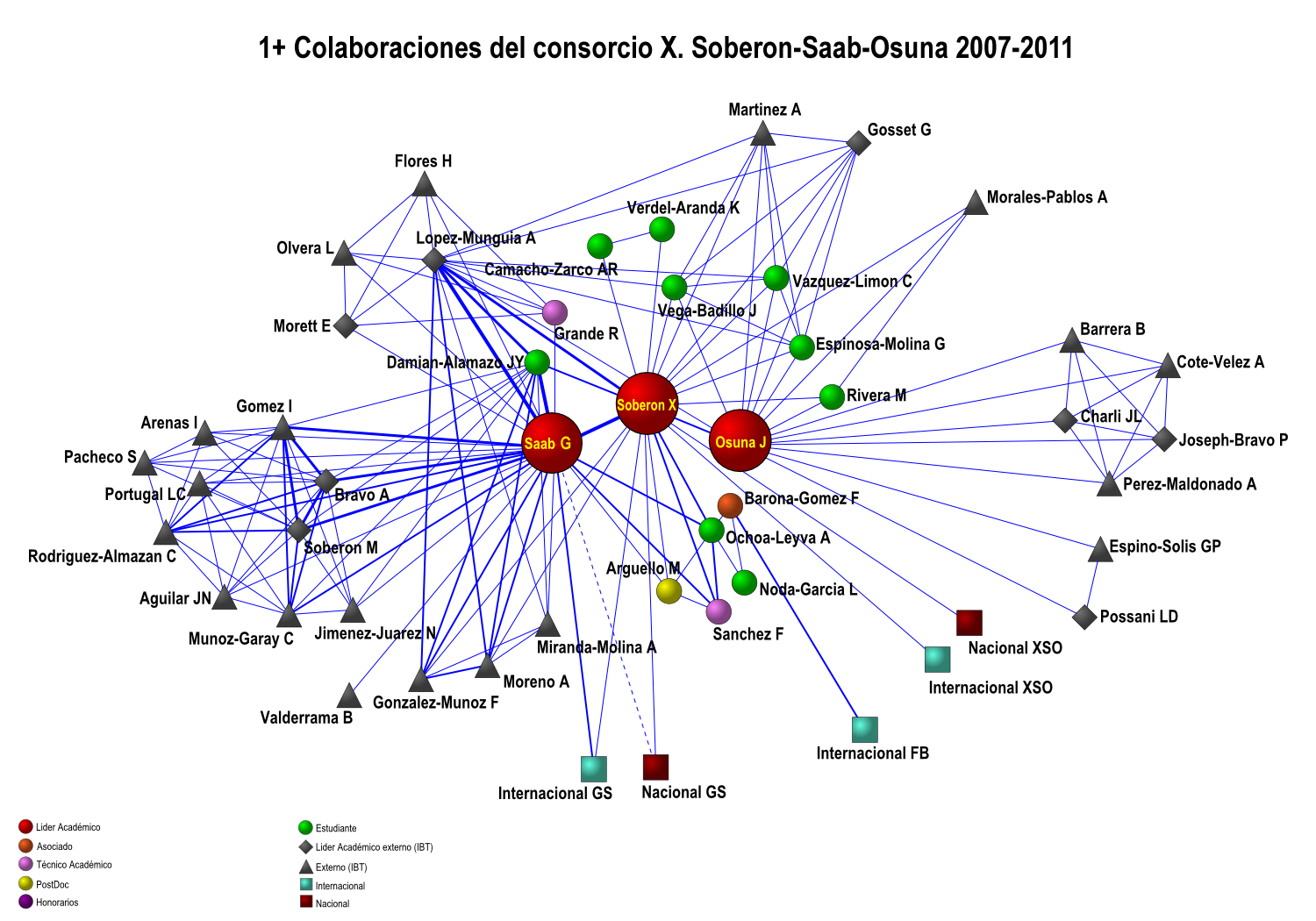 Colaboración interna de los grupos IBT-UNAM 2007-2011 (5 años)